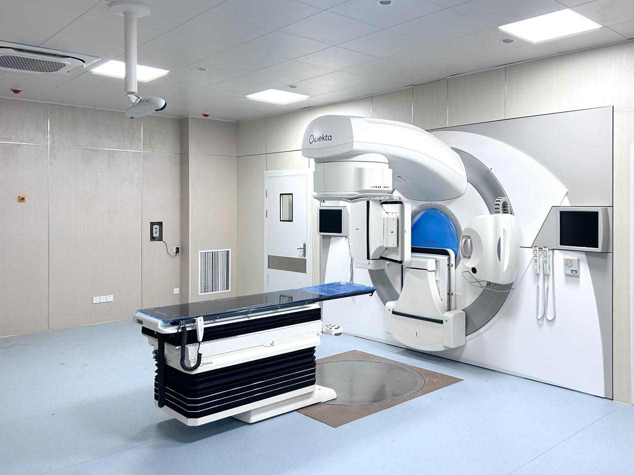 我院放射治疗科具备全球顶级的放疗装置——瑞典Elekta Infinity直线加速器,能够实现精准放疗。它采用了先进的数字化控制系统,机械精度高,能够实现精确定位,突破了传统放疗的物理精度局限,可针对不同部位肿瘤患者量身定制个性化治疗方案,并可执行多种先进的放射治疗技术,如调强放疗技术(IMRT)、图像引导放疗技术(IGRT)、快速旋转容积调强技术(VMAT)、立体定向放疗技术(SBRT)等。其采用影像引导技术,实现精准设备定位,确保治疗过程快速准确投照。同时拥有机载影像验证系统(CBCT、EPID)和呼吸门控系统(ABC),确保治疗的精准性和安全性,满足临床上的多种需求,同步配备大孔径定位高清析CT及后装机器设备,提供更精准更完善的治疗。